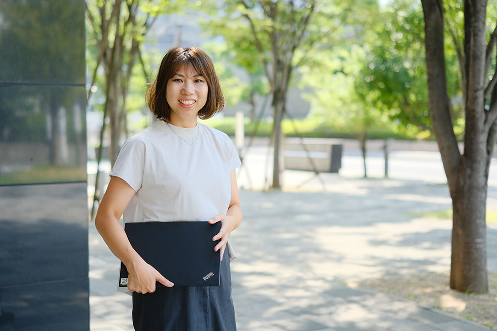 子育て中のため、6時間の短時間勤務と、フレックスタイム制を活用して勤務しています。通常勤務の人より早めに仕事を上がり、保育園のお迎えや家事・育児の時間を確保しています。子どもの学校行事がある日などは一時仕事を中断して中抜けし、終わったらまた仕事を再開する、ということもあります。制度を柔軟に活用して、仕事とプライベートのバランスを取っています。